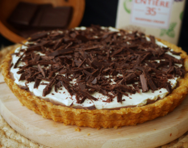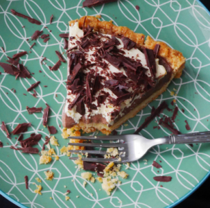 This classic pie brings together chocolate and cream in subtle and scrumptious ways. The chocolate filling is a soft, custard-like mousse that sits balanced on the palate while it plays with the crème fraîche topping. Shards of dark chocolate punctuate the flavour and the flaky crust rounds off everything in buttery goodness.