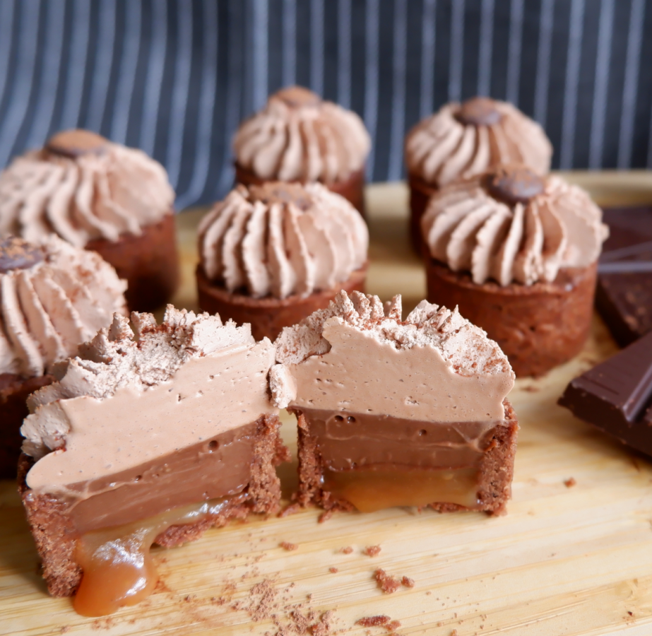 These decadent chocolate tarts are layered with homemade salted caramel sauce, filled with chocolate crémeux and topped with chocolate ganache montée. Perfect for sharing, but you might not want to! Each box comes with 12 mini tarts.