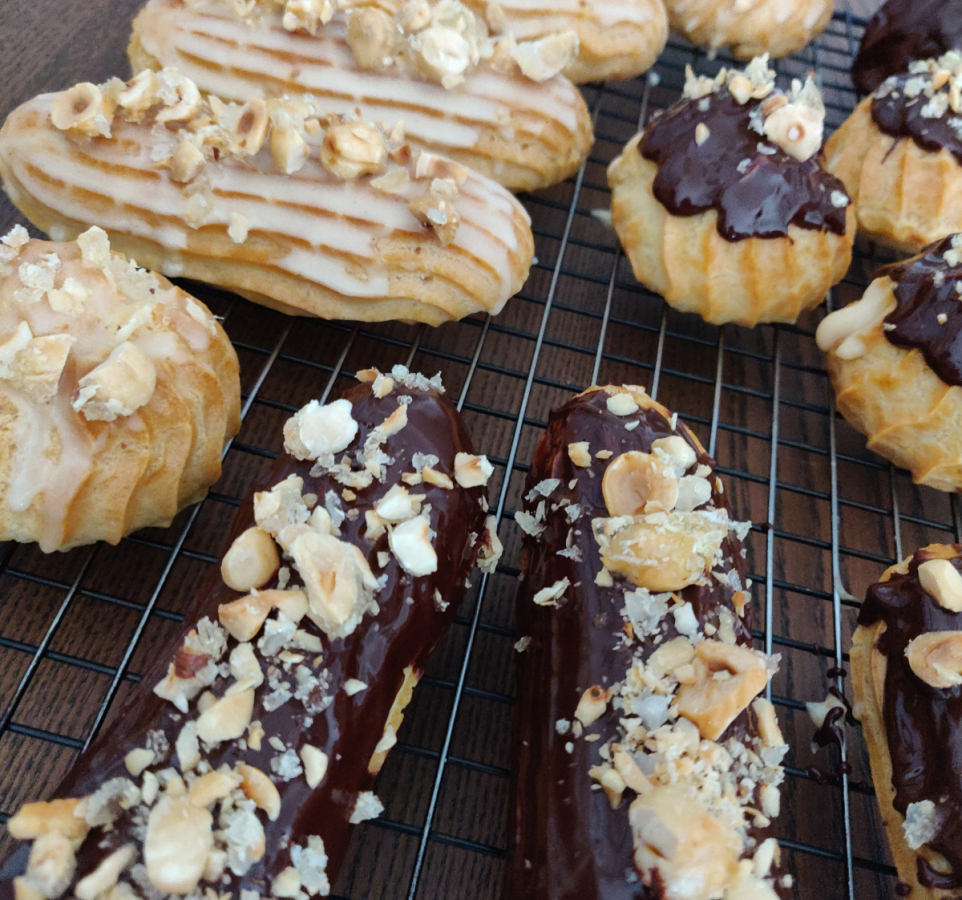 The choux pastry these are made from are twice cooked; once on the hob when combining the water, butter, flour and eggs, and then again in the oven where they’re baked at a high temperature that lets them steam up and rise to a puffy…puff.