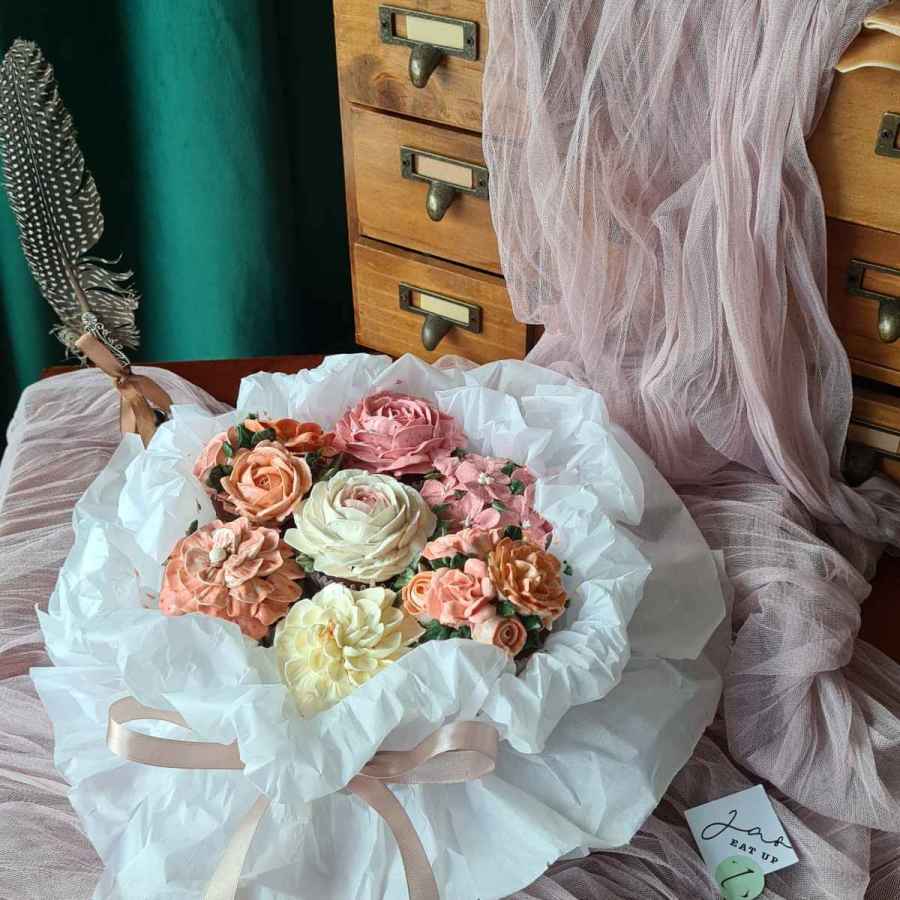 Red velvet cupcake with piped buttercream flower