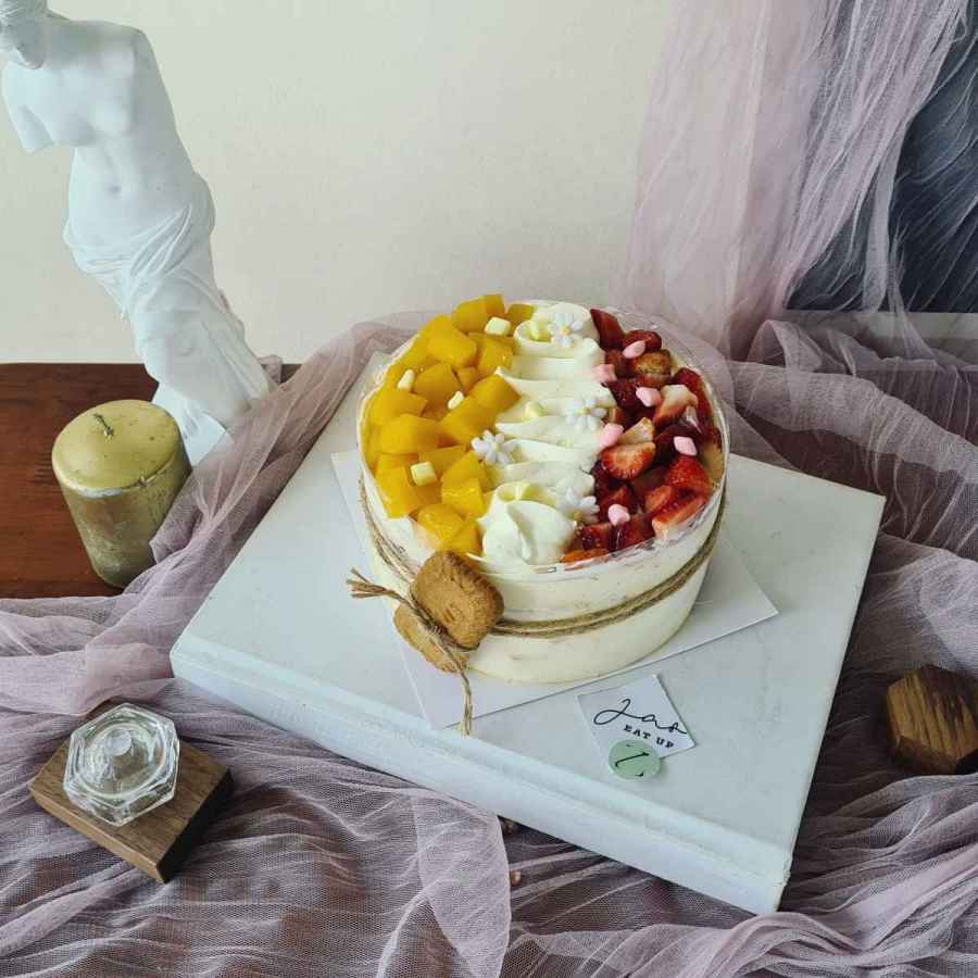Vanilla sponge,homemade custard cream filling with fresh mango