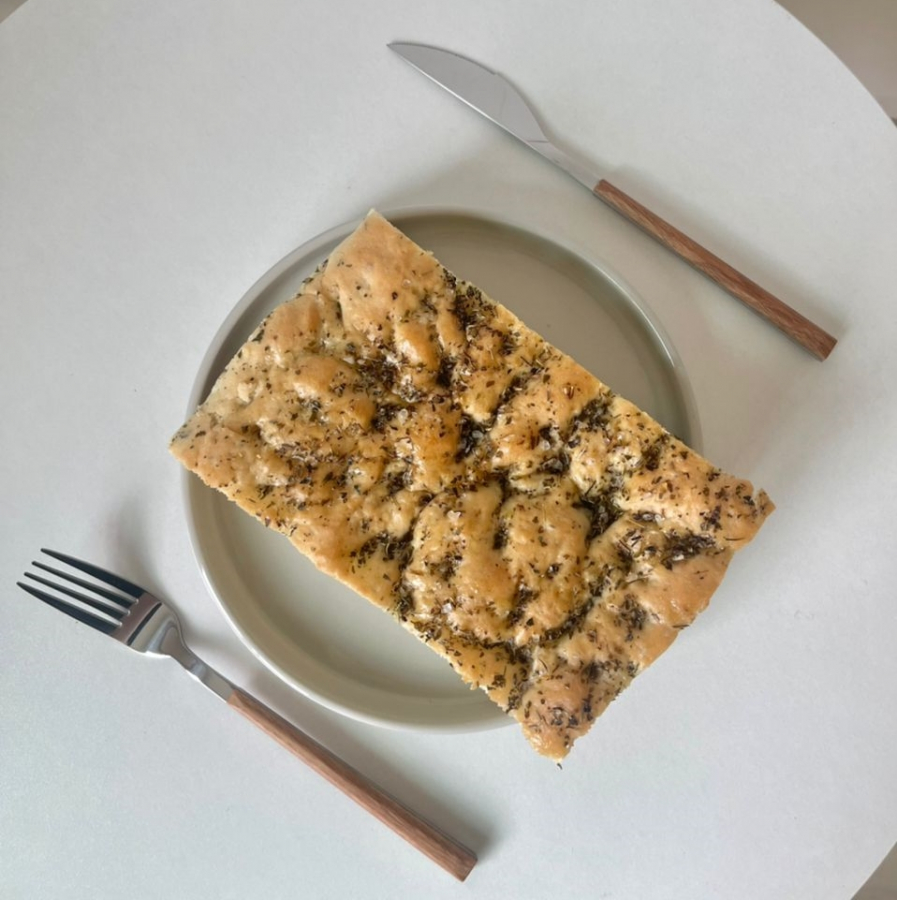 It is an Italian flat bread similar in style and texture to pizza dough. The dough is seasoned with significant amount of oil, sea salt and enriched with Italian herbs. The bread is magically chewy yet soft rich and just slightly crunchy and crusty at the edges. Focaccia often be served as an appetizer, table bread or snack.