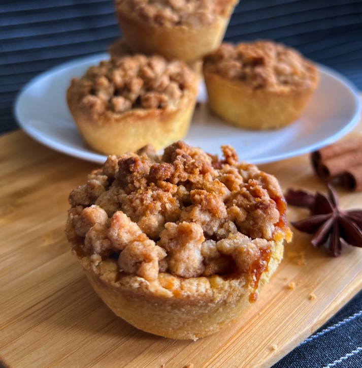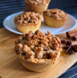 Each tart is filled with custard and spiced apple, then topped with crunchy streusel bits. This warm and mouth-watering treat will leave you craving for more. Perfect for any occasion! Each box comes with 6 mini tarts.