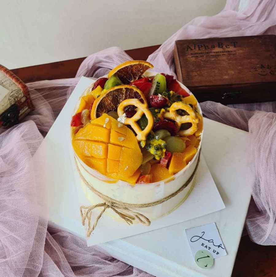 Vanilla sponge,homemade custard cream filling with fresh Mango,