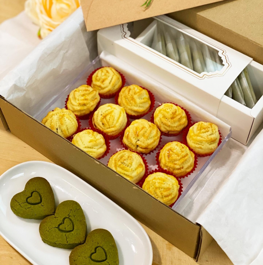 It comes with a box of rose-shaped pineapple tarts and match short bread cookies baked with Niko Neko Matcha, individually packed.