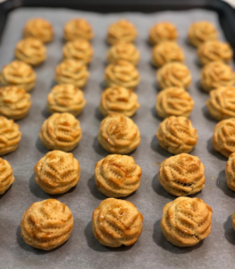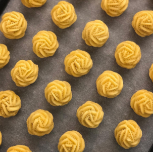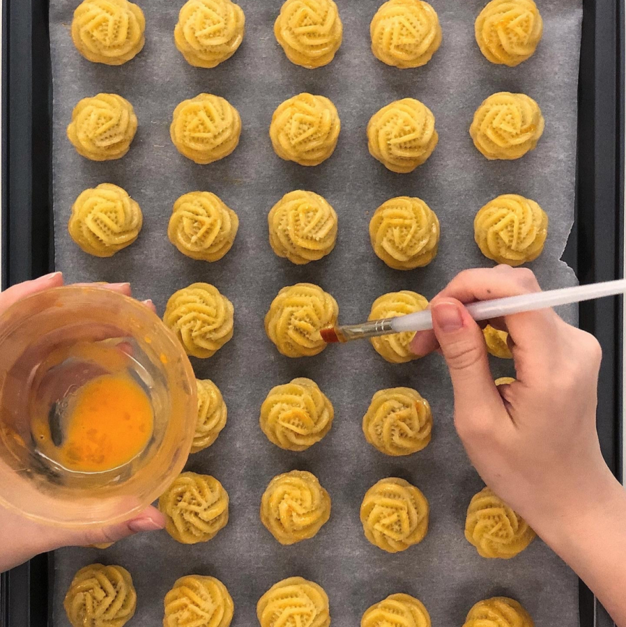 Pineapple tarts - Butter, salt, sugar, egg, pineapple jam, baking soda, baking powder