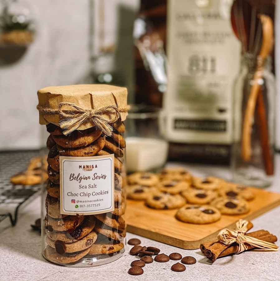 Crunchy chocolate chip cookies made with pure butter, Callebaut dark chocolate, and dark callets on top with a hint of sea salt flakes. Indulge in this irresistible chocolate loaded cookies!