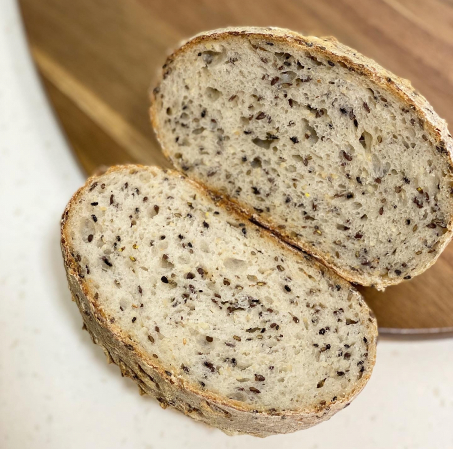 Seeded Sourdough - white flour, flaxseeds, white and black sesame seeds. Every bread is freshly baked upon order!