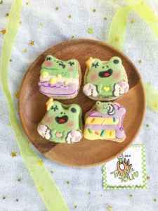 Our signature froggy macarons, available in 3 flavours: