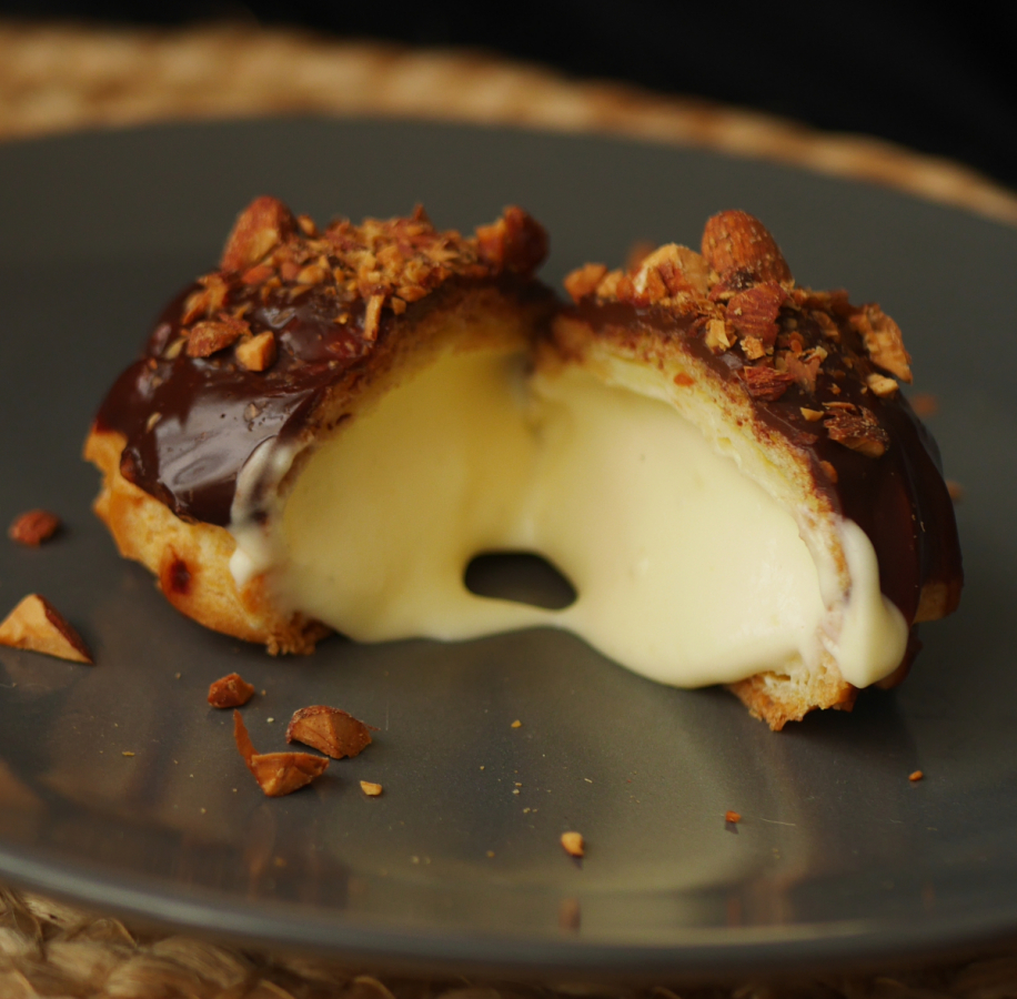 We pack our cream puffs with decadent diplomat cream - a fluffy mix of vanilla custard and whipped cream that bursts into your mouth as soon as you take a bite.